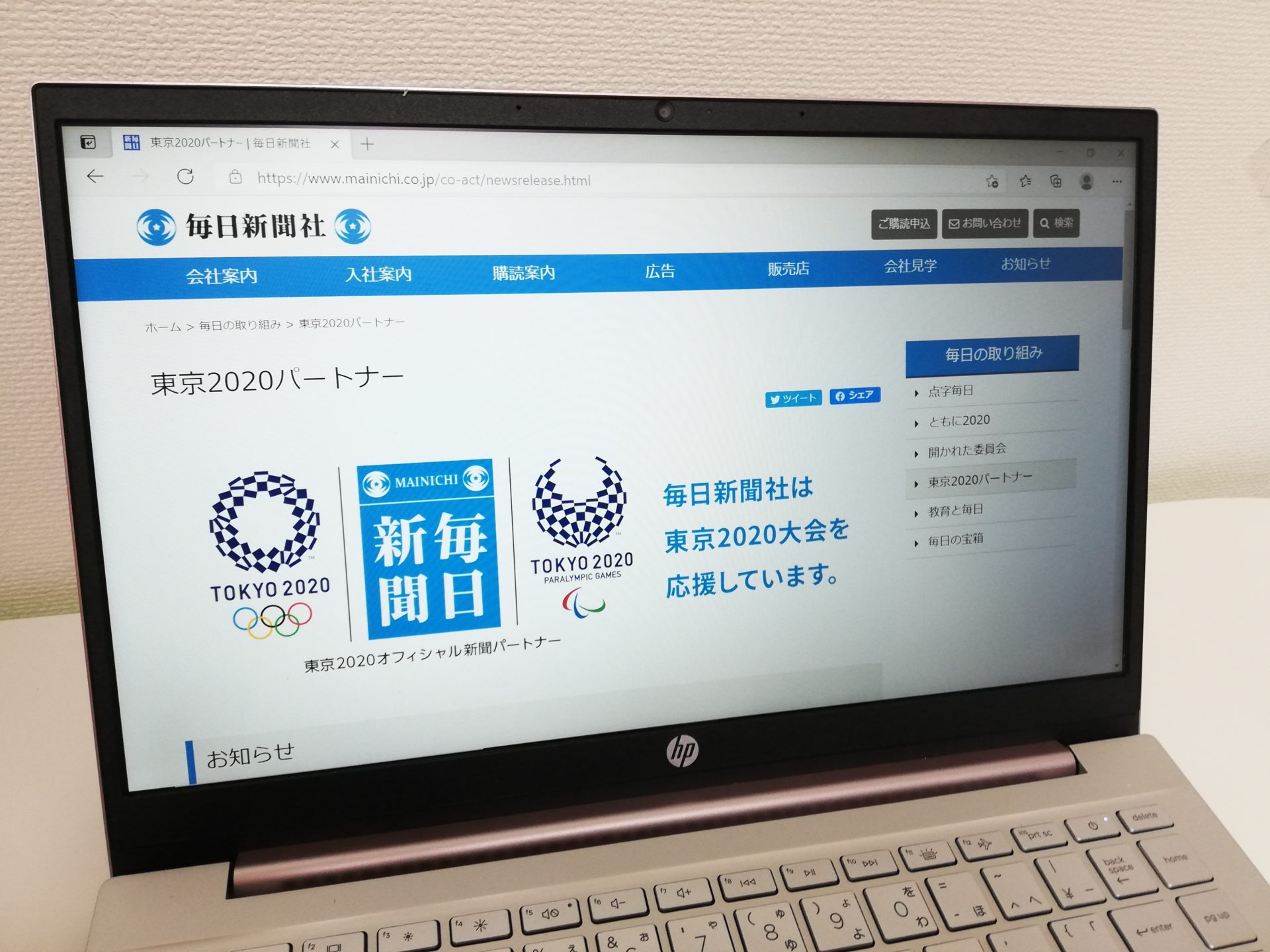 Mainichi Shimbun homepage (Photo: Kyoka Maeda)