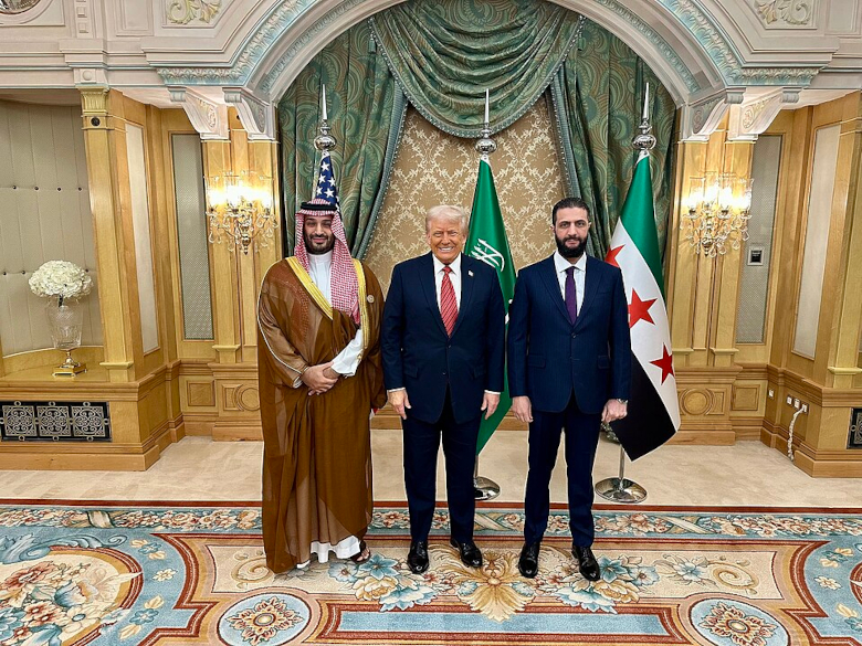 Ahmed al-Sharaa of Syria meeting with the Saudi crown prince and the U.S. president (Photo: White House / Wikimedia Commons [Public domain] )